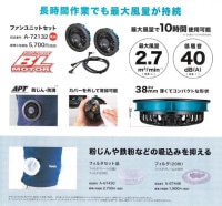 既存のファンユニットセット品A-67527に比べて大風量、薄型になります。 薄型バッテリBL1055Bが使えるので、両方あわせると軽量薄型になります。 |